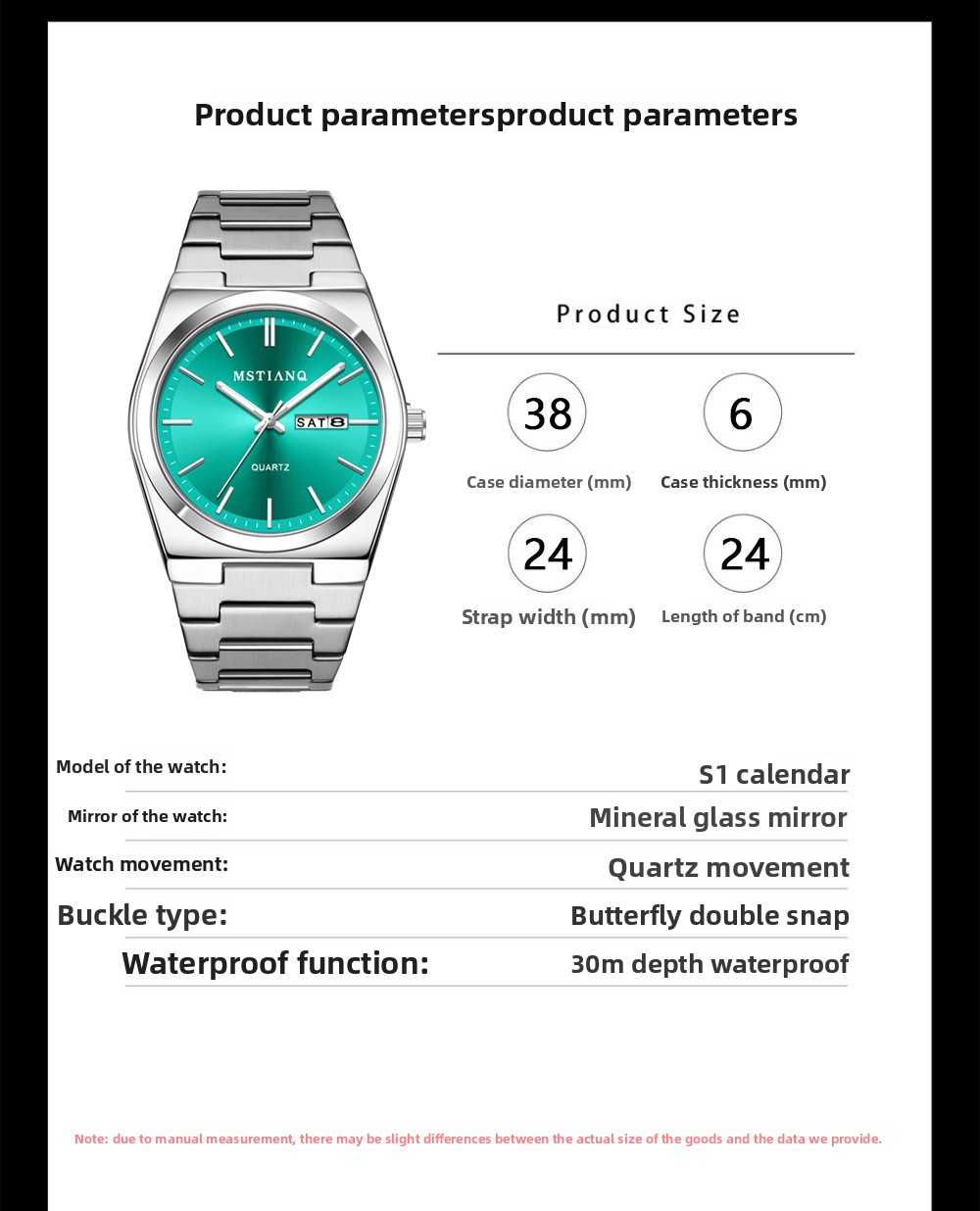 Waterproof Design: Offers 30M water resistance, suitable for daily wear.