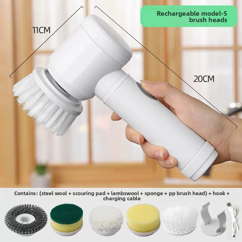 Multiple Brush Heads: Includes different types (sponge, brush, scouring pad, cashmere cloth, steel ball) for versatile cleaning.